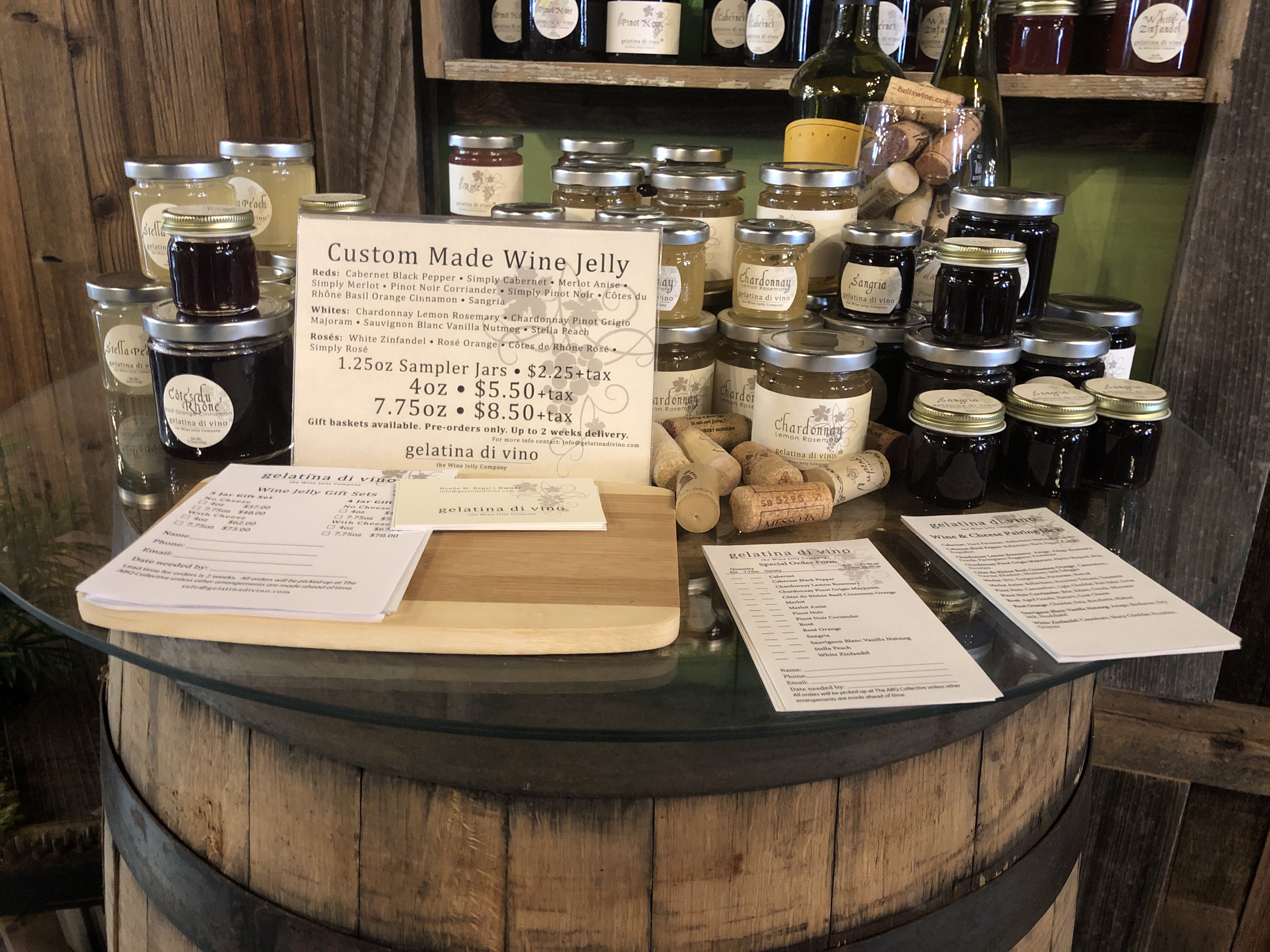 ![]() | gelatina di divino 1321 Eubank NE Albuquerque, New Mexico 87112 5055541853 | Cabernet Black Pepper Regular Price: $varies by size Sale Price: $ wine jelly, reds, whites, roses Category: Jelly |