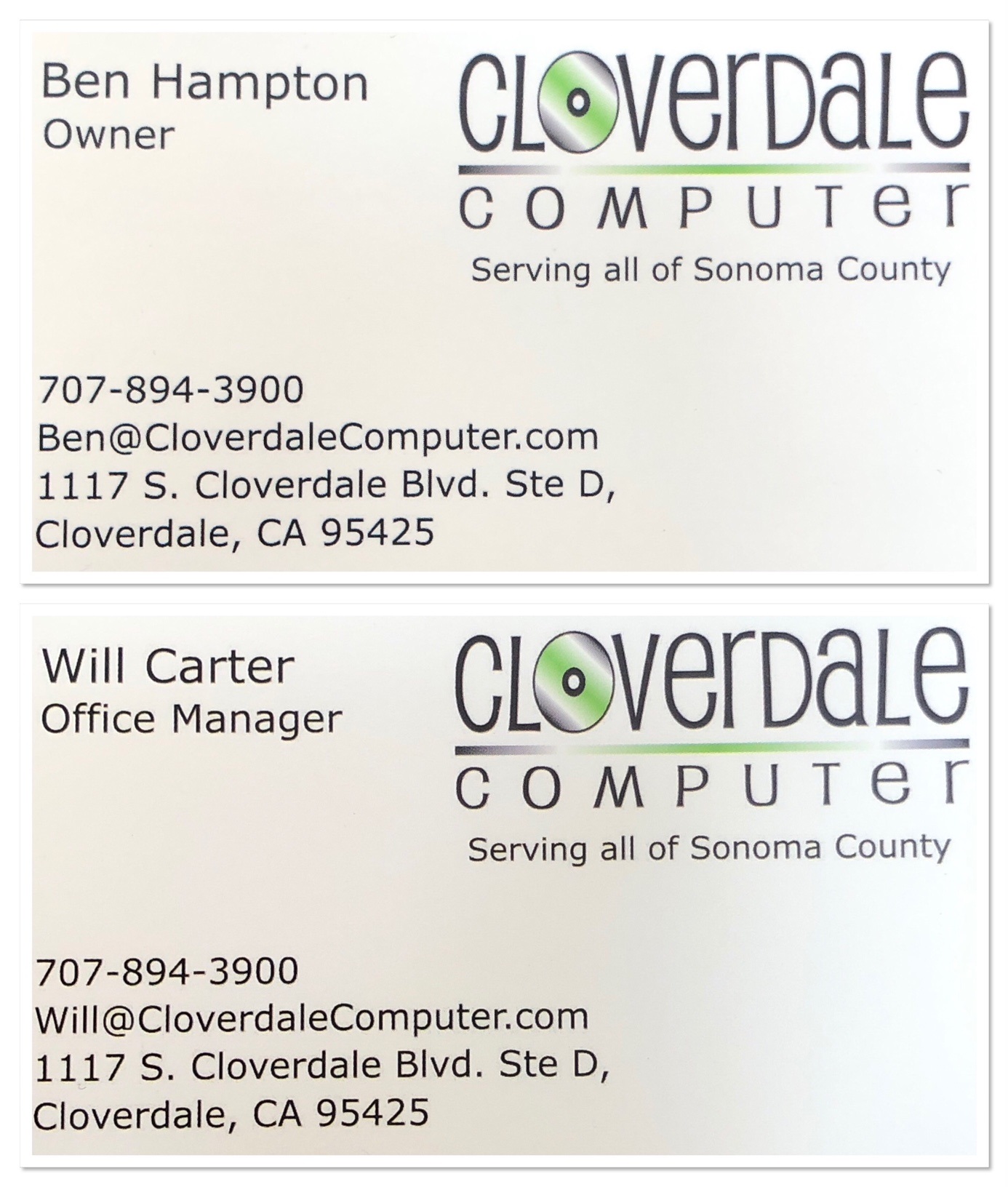 | Cloverdale Computer 1117 S Cloverdale Blvd Unit D Cloverdale, California 95425 707-894-3900 www.cloverdalecomputer.com